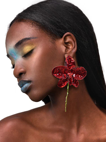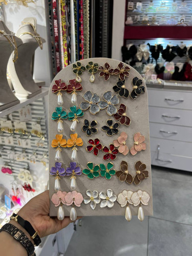 گوشواره گل رنگبندی سبز قرمز صورتی سفید مشکی