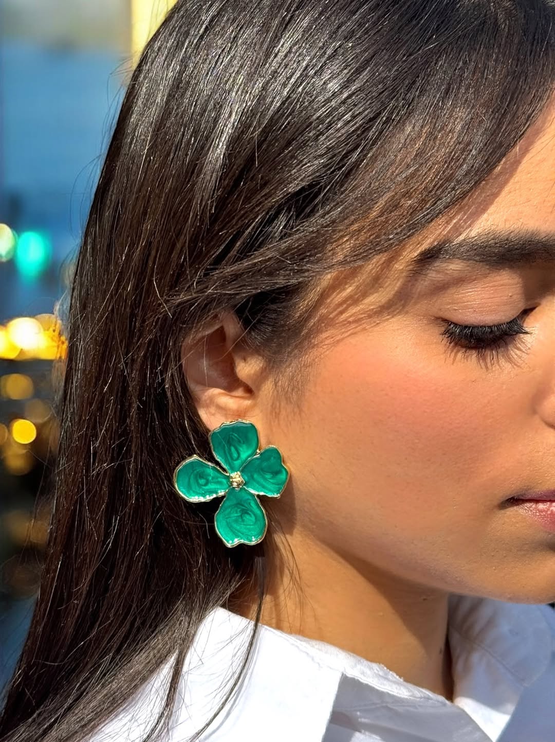 گوشواره گل رنگبندی سبز قرمز صورتی سفید مشکی