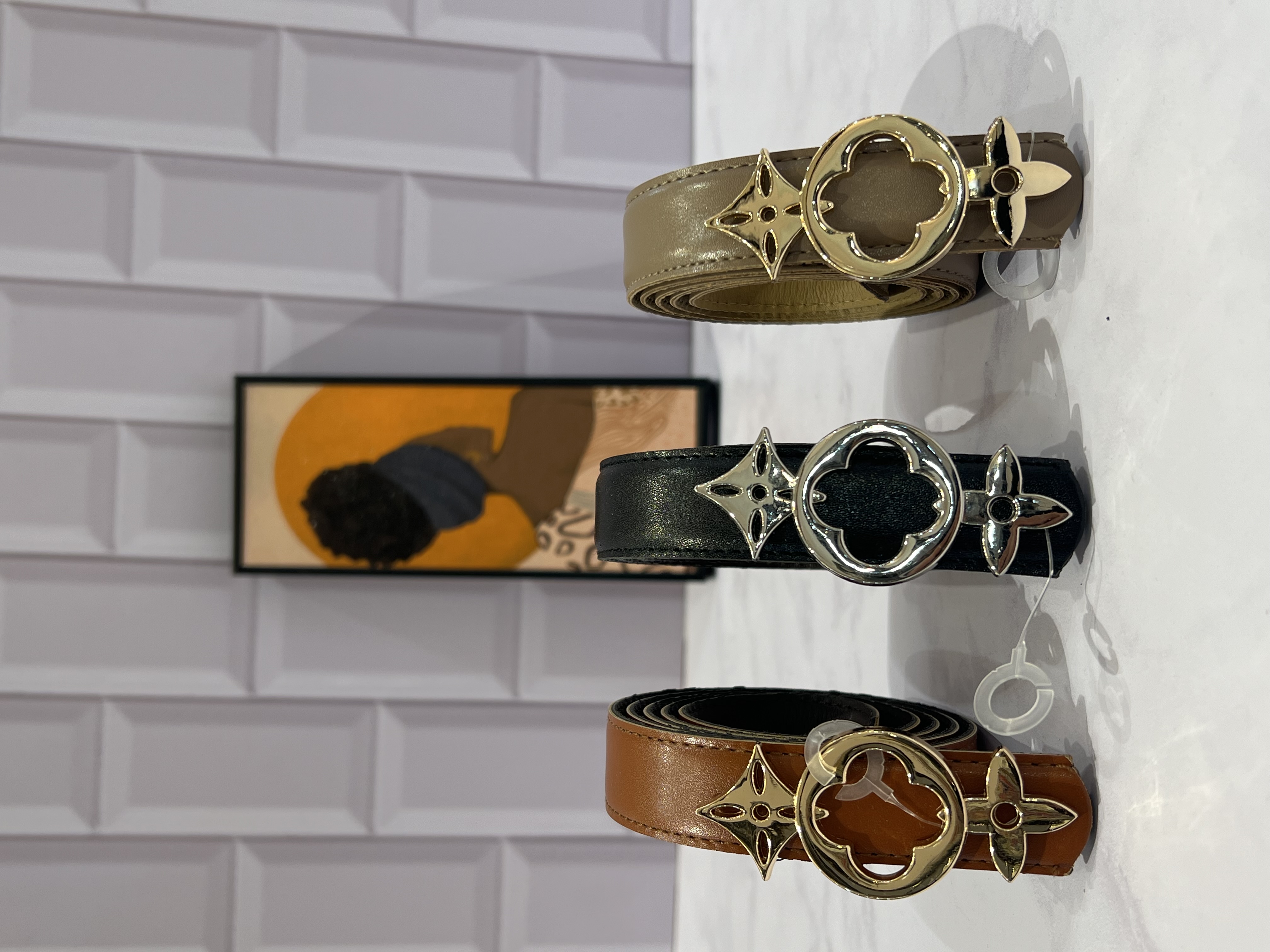 کمربند چرم مصنوعی دخترانه دور دوخت سگگ پاپیون